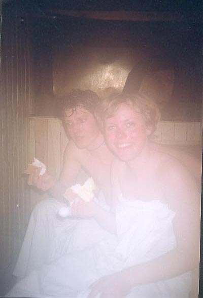 Mary and me eating ice-cream in the sauna.