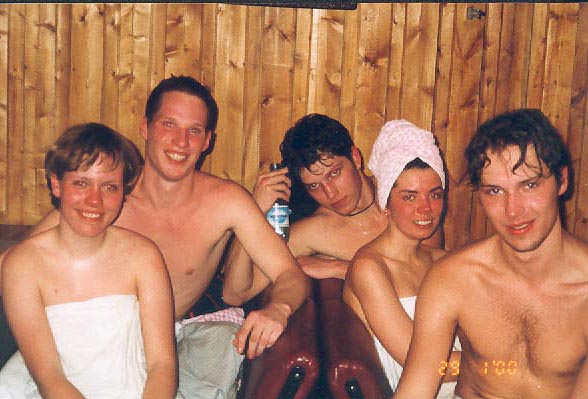 In the sauna of Cheget hotel. Mary, Daniel, me, Olga, Vega.